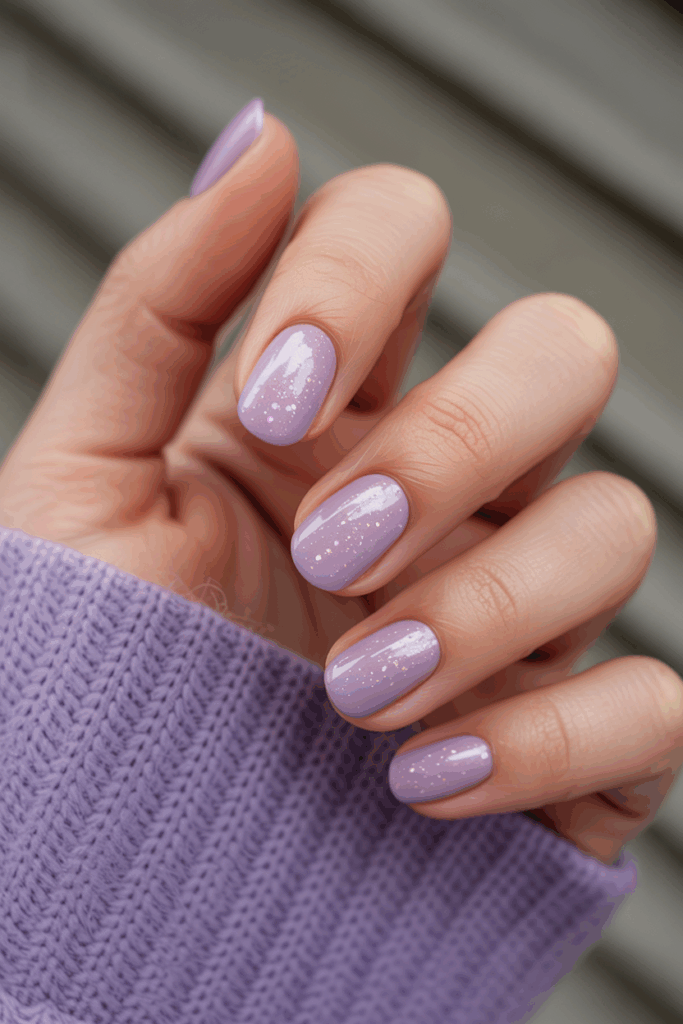 Adding glitter to lavender nails creates a delicate sparkle. The glitter can be used on a few nails or scattered across the whole set to add interest without being too bold.