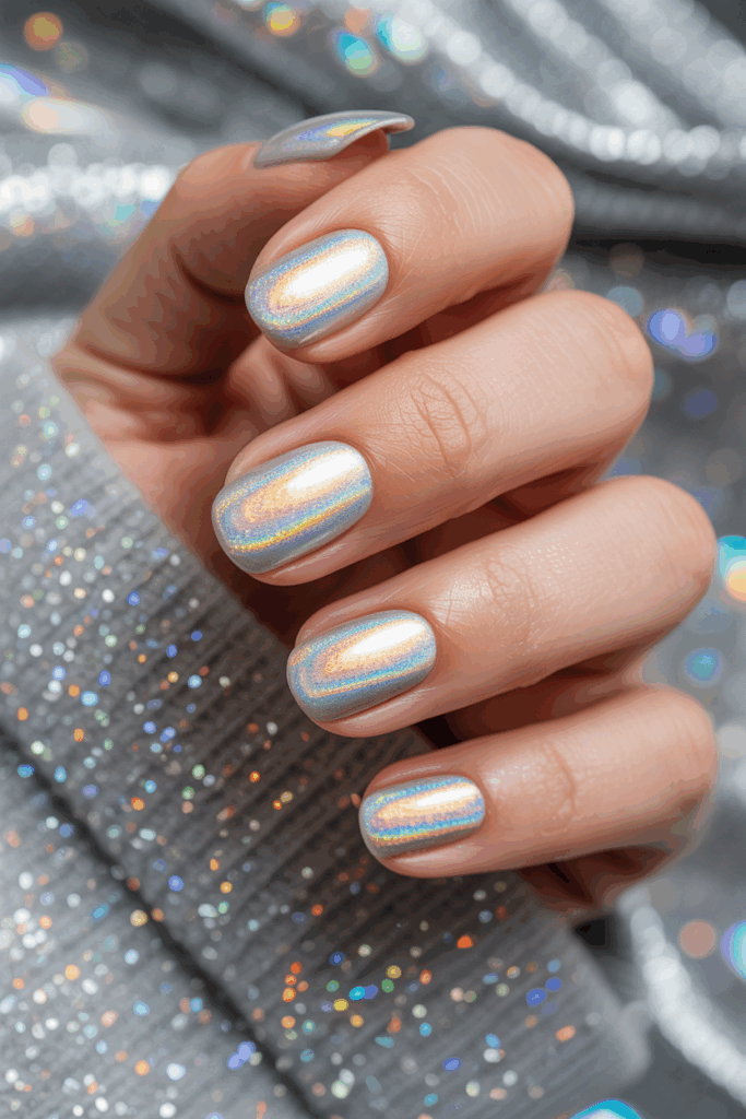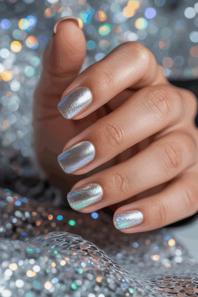 Many nail artists combine holographic silver with glitter or small designs. This adds extra shine while keeping the look elegant and polished.