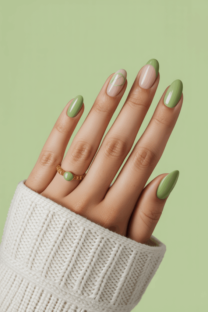 Many people like to use matcha green on one or two nails as a highlight. This subtle pop of color fits both simple and more detailed styles.