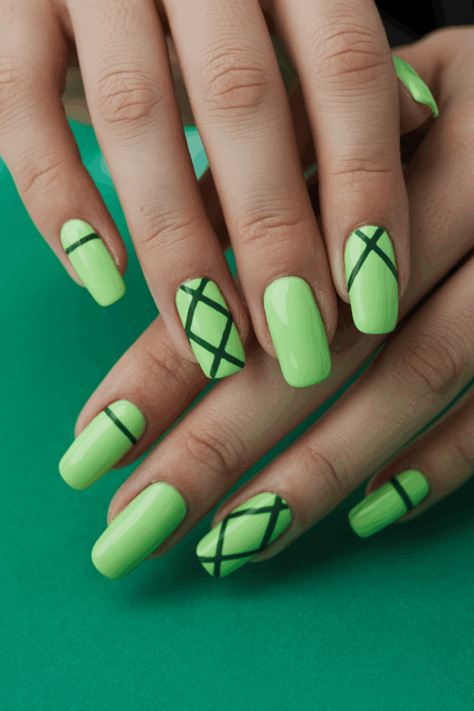 These patterns often feature lines, stripes, and shapes like triangles or squares. The contrast between neon green and other colors adds depth and energy to the design. It can be as simple or complex as desired.