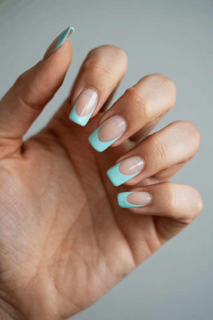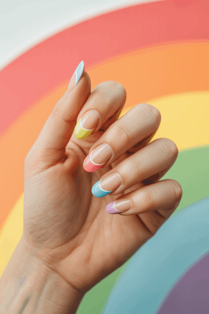This design usually features tips painted in different pastel colors. The rest of the nail is often kept simple with clear or nude polish. This keeps the focus on the colorful tips without making the nails look too busy.