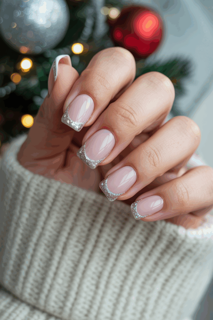 The silver tips catch light easily, making the nails look elegant and polished. This style is simple but adds a touch of sparkle fit for Christmas.