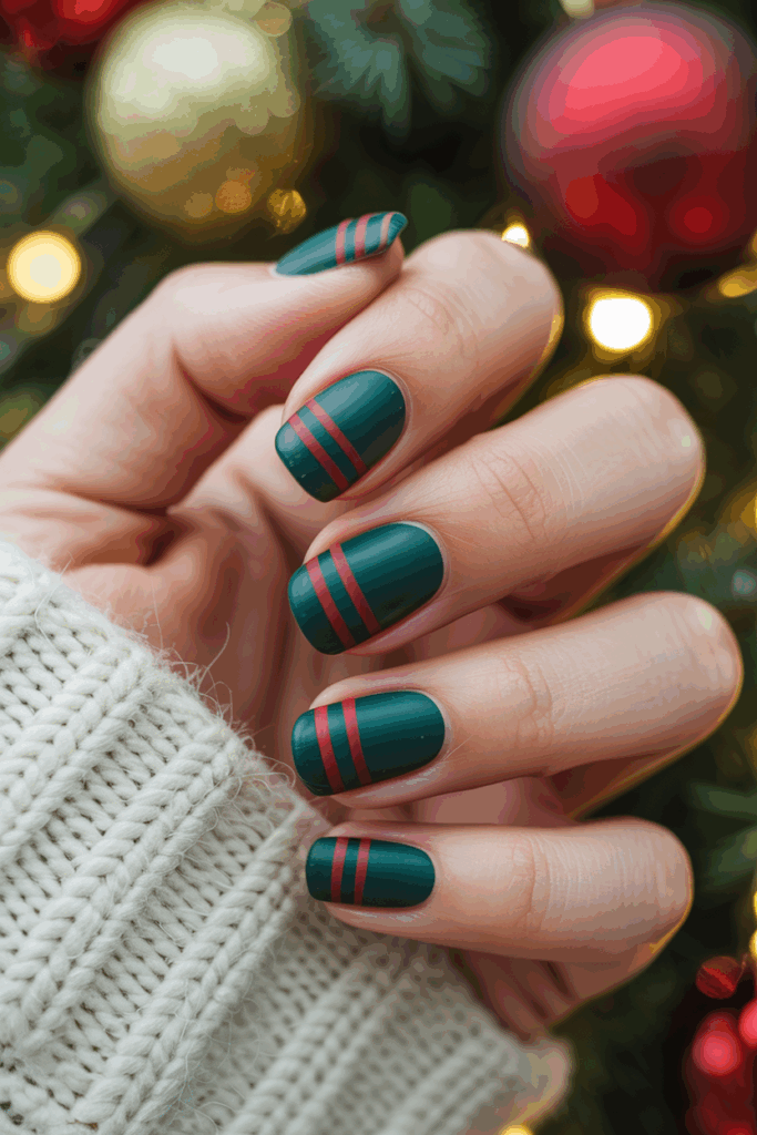 This design balances boldness and subtlety, making it ideal for both casual and formal holiday events. It works well with matte or shiny finishes.