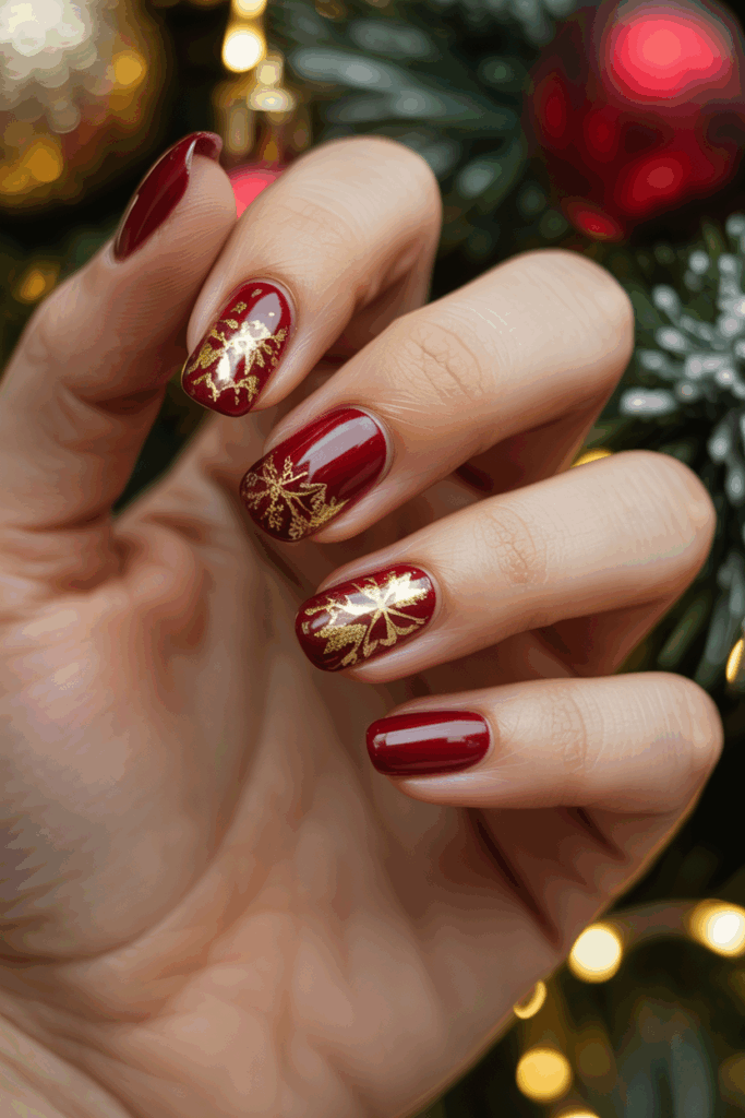 This style works well for both short and almond-shaped nails. It balances holiday spirit with a sophisticated style.