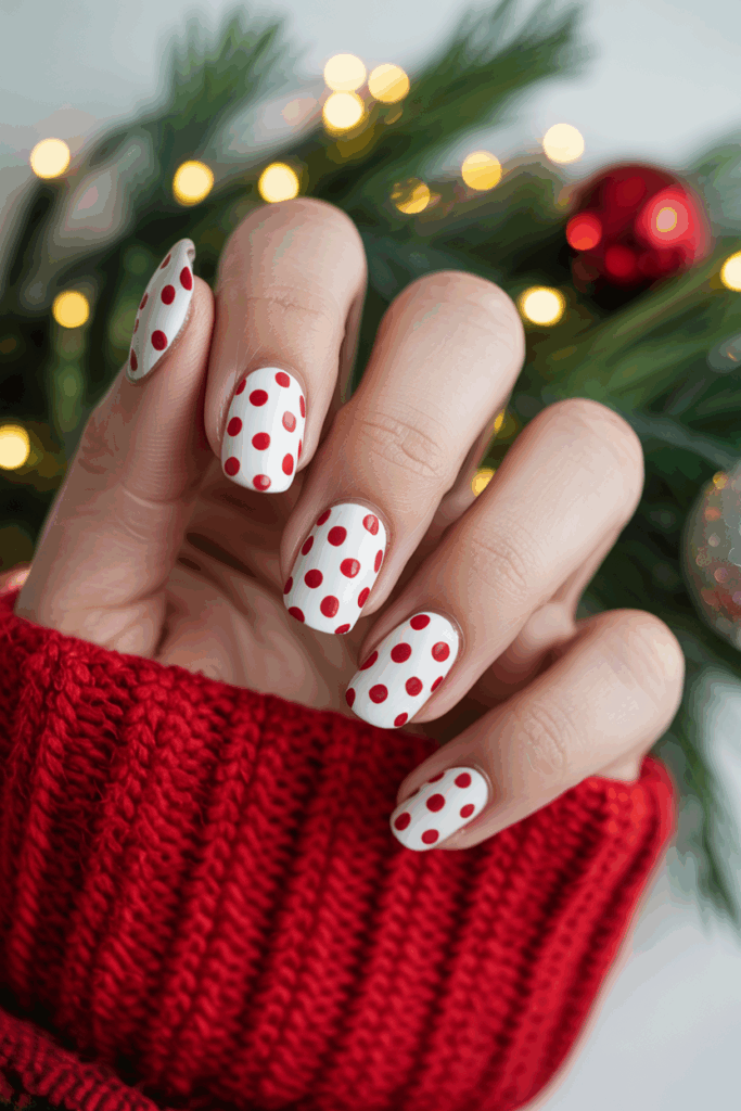 This style works well on both short and long nails. Some variations include adding glitter or mixing in green stripes for extra holiday cheer. It is a popular choice for Christmas because it is both playful and elegant.