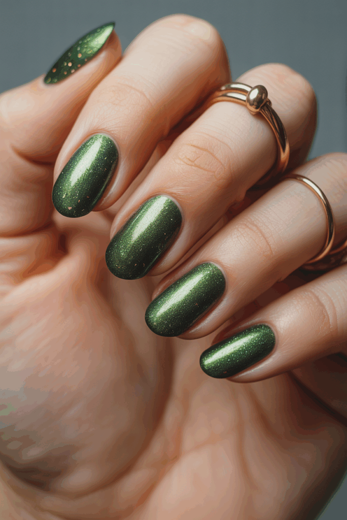 13) Metallic green polish with subtle sparkle