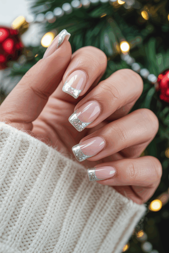 Silver glitter French tips add a shiny and festive touch to classic French manicures. They bring subtle sparkle without being too loud.