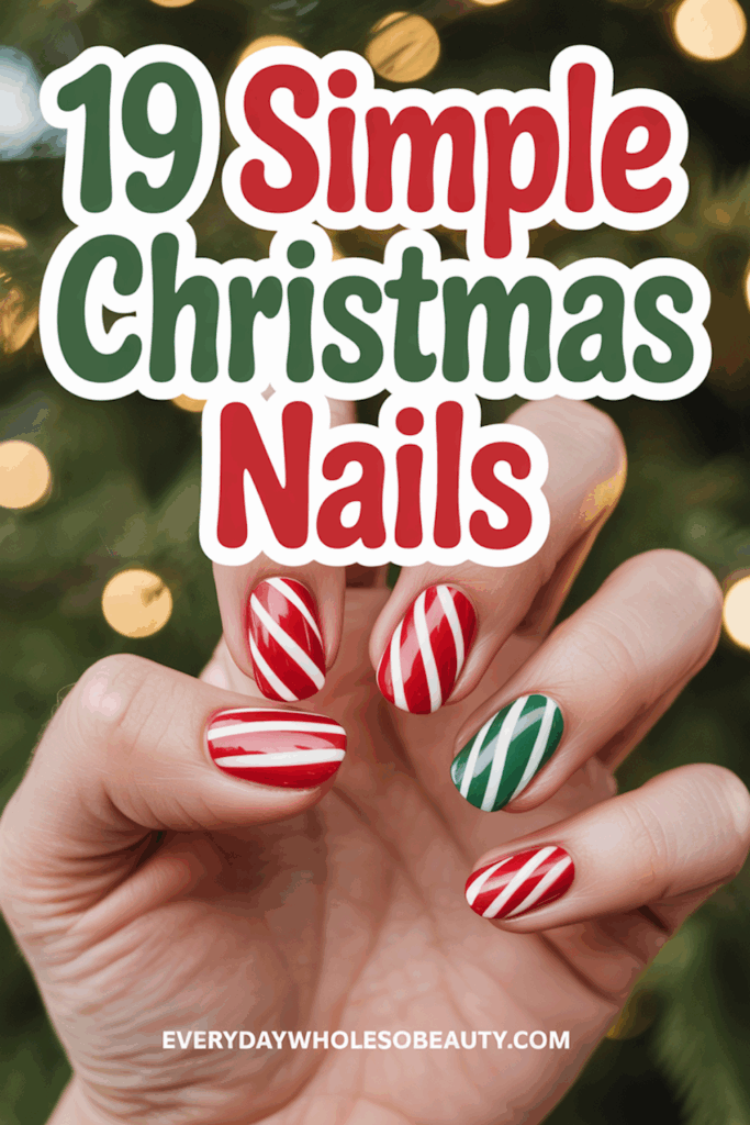 The stripes are simple but add a festive touch without being too much. It works well for those who want holiday nails that are easy and stylish.