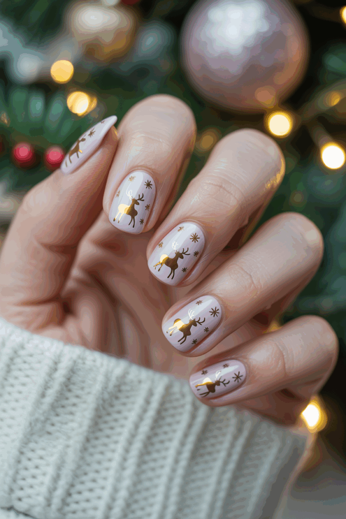 The tiny decorations add holiday detail without being too bold. This style suits people who want subtle Christmas nails that still feel festive. It works well for all nail lengths and shapes.