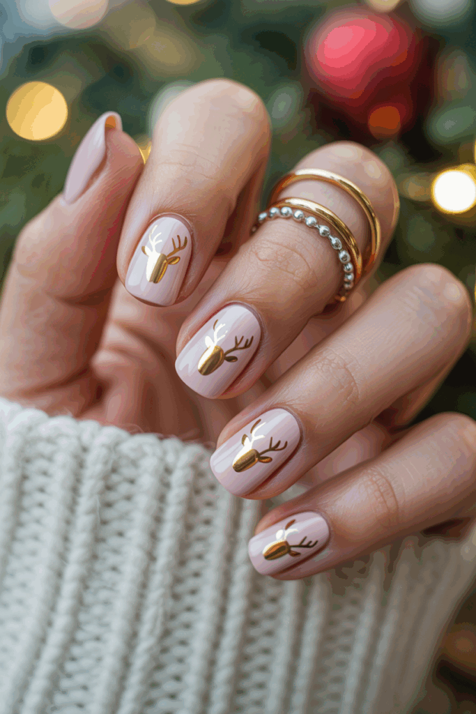The gold color contrasts well with the pink, making the reindeer stand out without being too bold. It is simple and elegant, suitable for people who prefer a minimal holiday style.