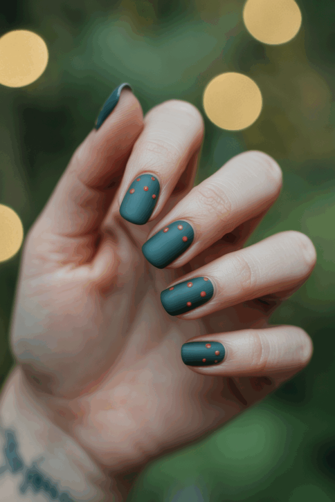 The red dots can be placed near the cuticle or scattered for a balanced effect. This style is easy to wear and fits well with holiday themes.