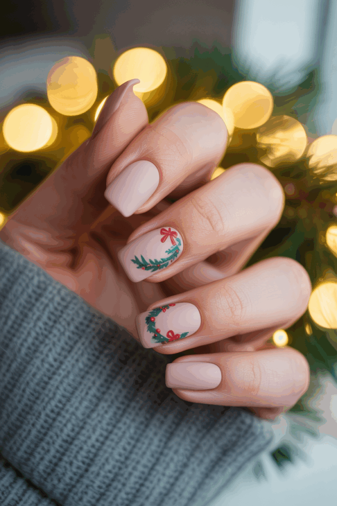 Adding small Christmas wreath details brings a festive touch without being too bold. The wreath designs can be simple, featuring tiny greenery and a delicate bow.