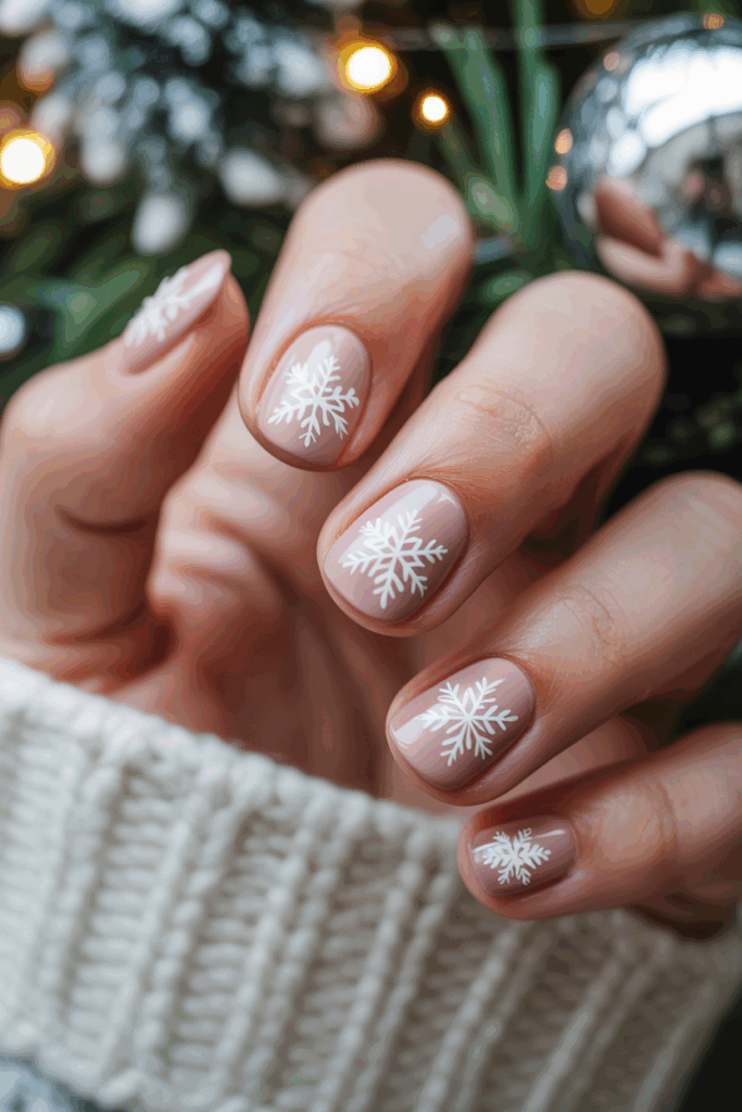 Delicate white snowflakes are usually hand-painted or applied with nail stickers. They add a subtle yet festive touch without being too bold.