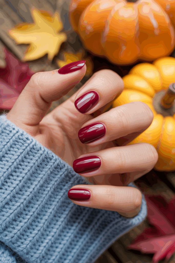 Burgundy is a classic fall nail color that never goes out of style. The rich, deep shade mirrors the hues of fall leaves and feels elegant on every nail shape. It’s perfect for October and November, giving your manicure a timeless finish.
