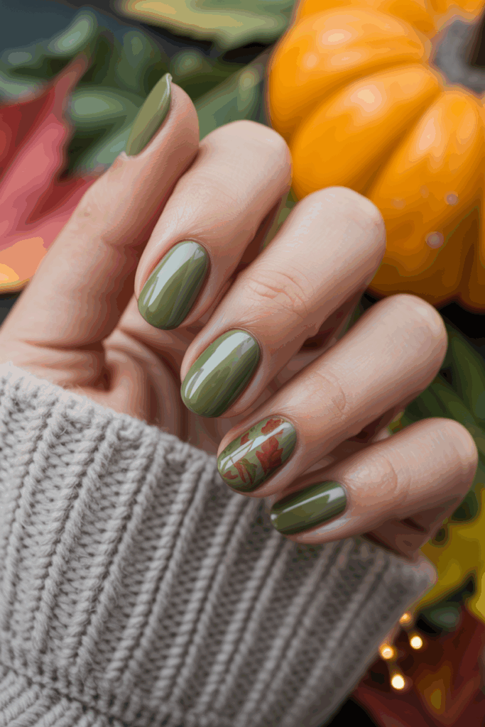 Olive green is one of the most versatile autumn nail colors, striking a balance between earthy and chic. Its muted tone makes it easy to wear, while still adding a stylish edge.