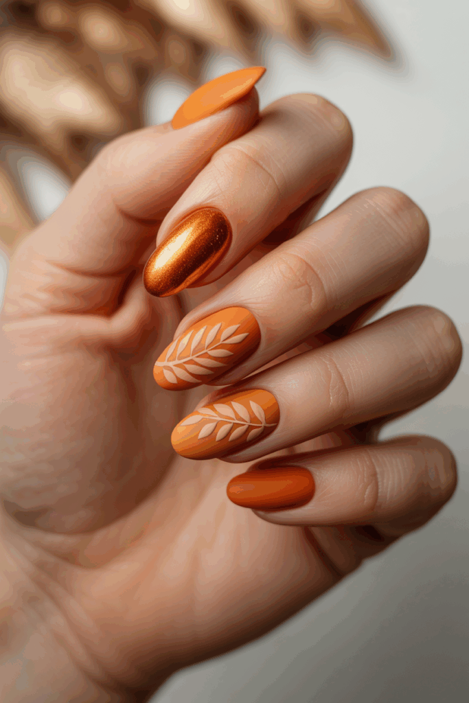 This design works especially well for special occasions or formal events in the fall. The balance of softness and glam makes it a versatile option for those who want a refined yet festive manicure.