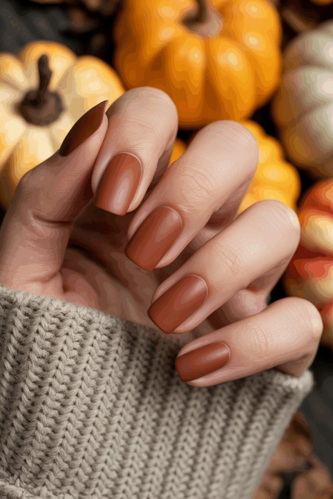 Cinnamon brown is one of the coziest shades for fall, bringing warmth and comfort to a manicure. It mimics the tones of autumn spices and pairs effortlessly with seasonal outfits.