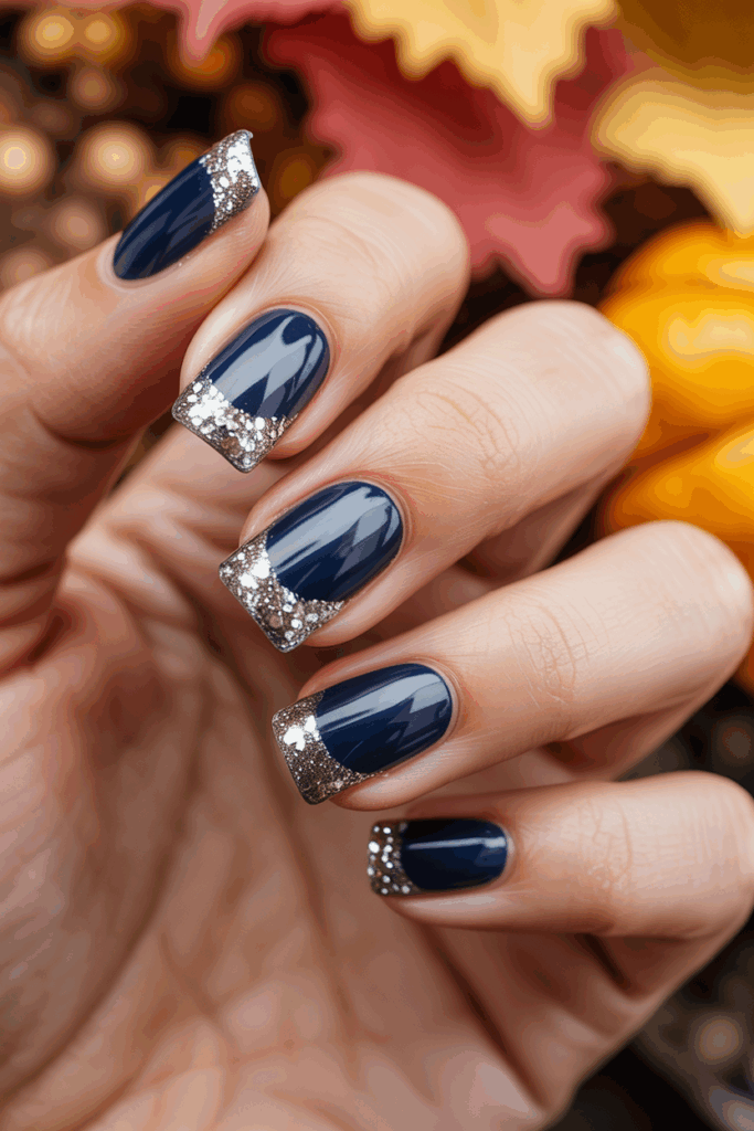 Navy blue nails are a bold choice for fall, reflecting the deep, cool tones of autumn evenings. The shade is dramatic yet versatile, suiting both casual and formal settings.