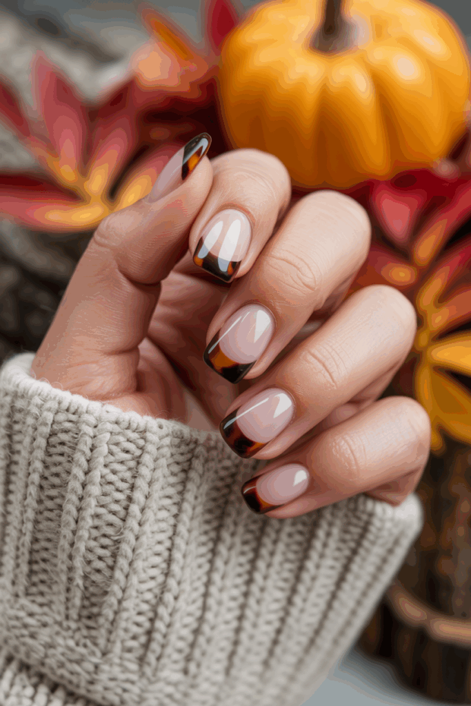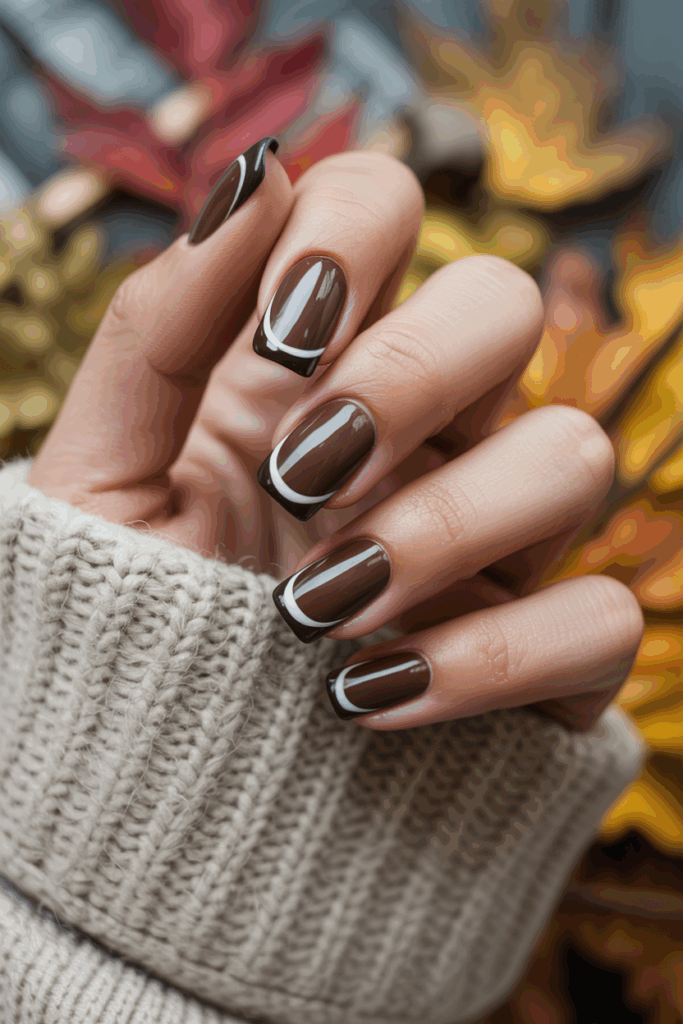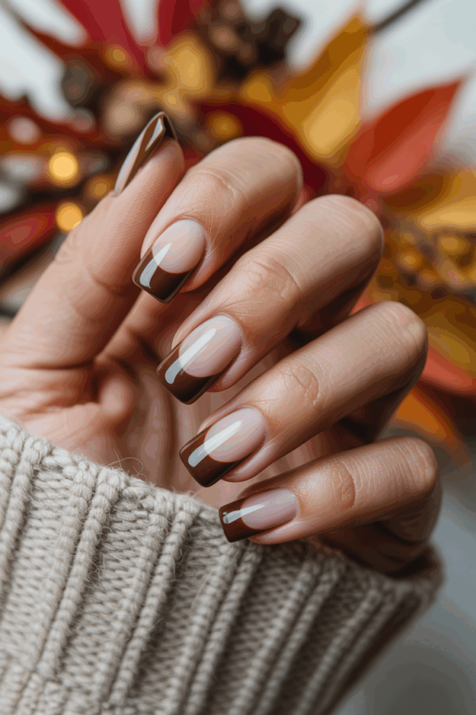 This design swaps the classic white tips for a deep chocolate brown. It adds warmth and suits the fall season well.