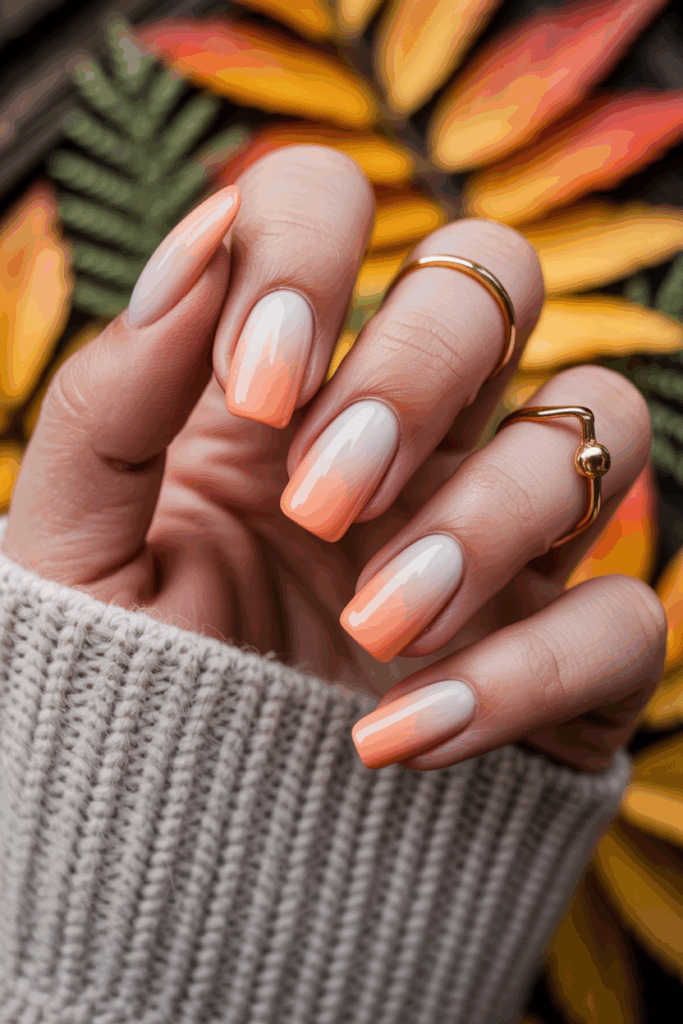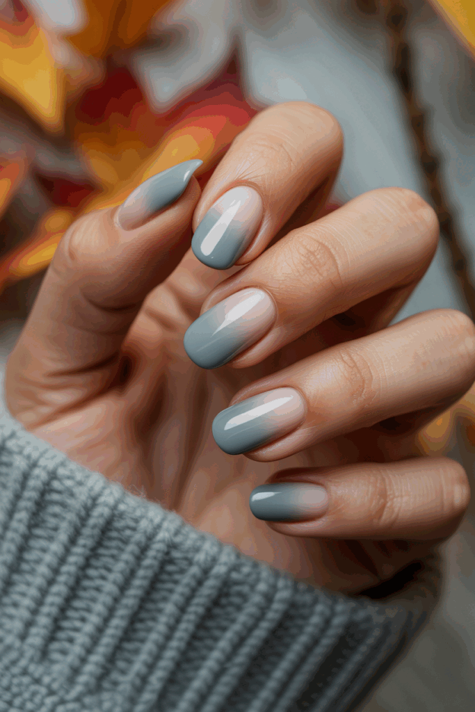 A soft grey ombre starting from a nude base creates a smooth, elegant transition. The gradient effect looks polished and modern, making it a subtle way to wear seasonal tones.