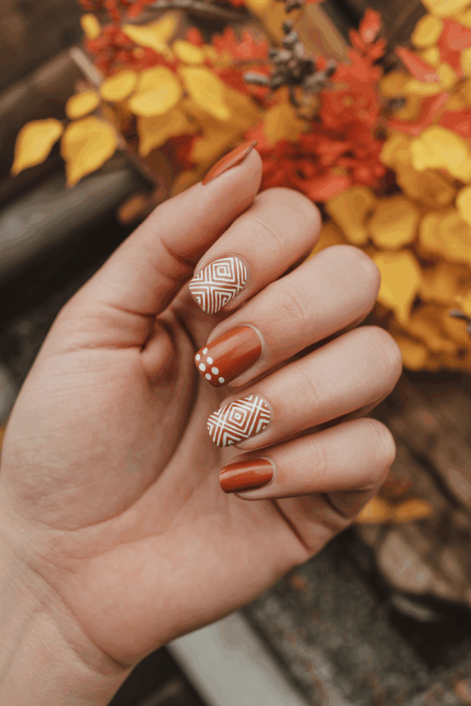 This look is great for those who enjoy trendy nail art without being overly flashy. The earthy tones keep it wearable, while the patterns add a contemporary edge.
