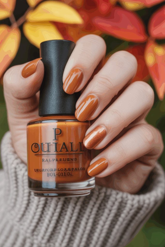 Caramel nails with shimmer are ideal for both daytime wear and evening occasions. They transition easily from casual outfits to formal attire, making them a go-to choice for anyone who wants understated fall glamour.