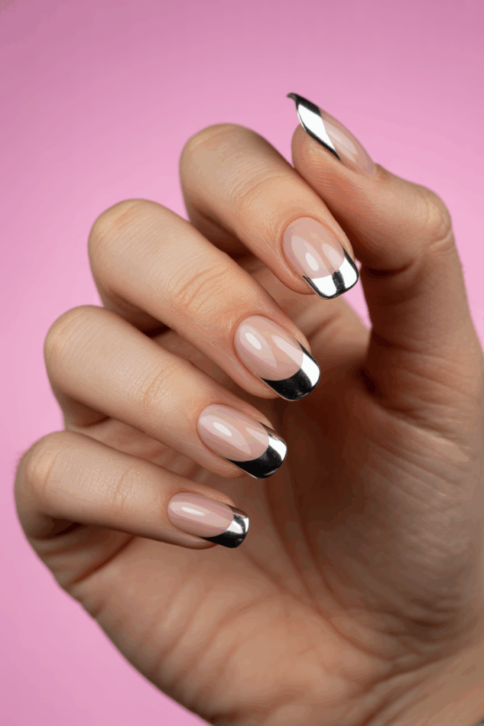 3) Chrome French tips with metallic finish