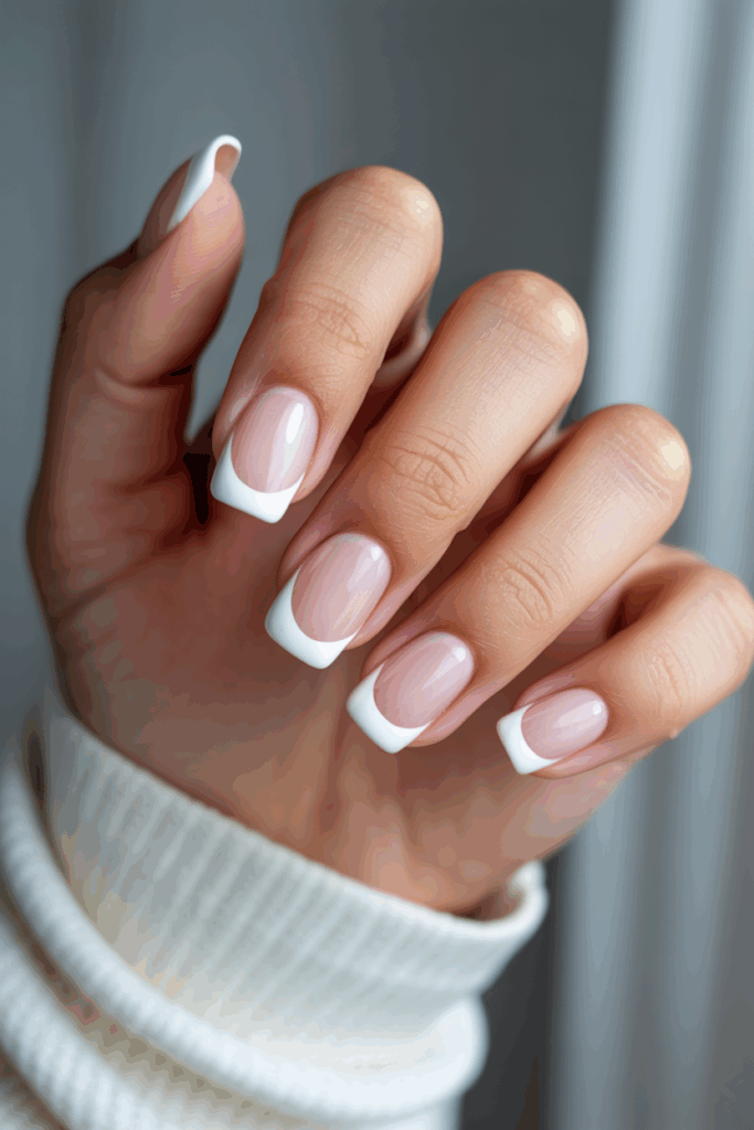 1) Classic white tip French manicure