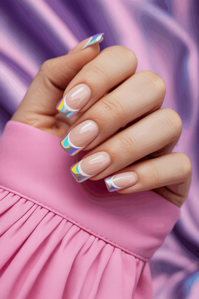 17) French tips combined with holographic accents