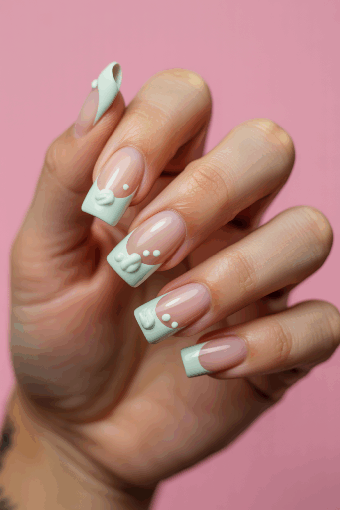 This style adds small, raised details to traditional French tips. It often includes tiny gems or pearls placed near the tip.
