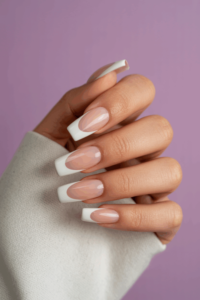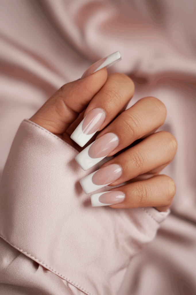 This style blends a crisp white tip smoothly into a nude base. It creates a subtle gradient that feels modern yet classic. The look works well for everyday wear and formal occasions. It adds elegance without being too bold.