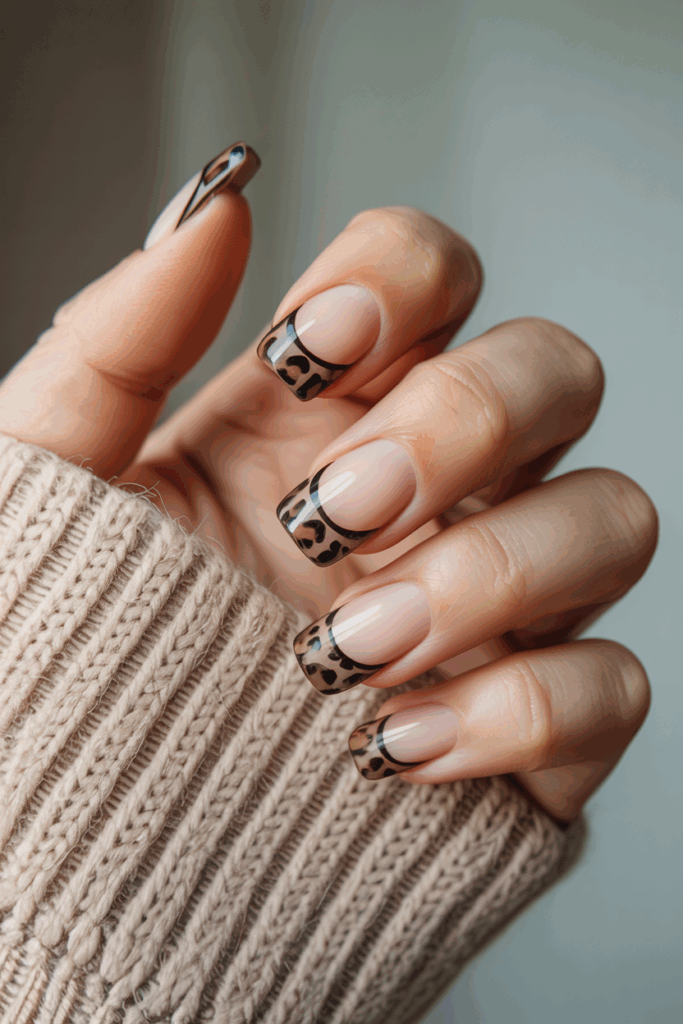 6) French tips with leopard print accents