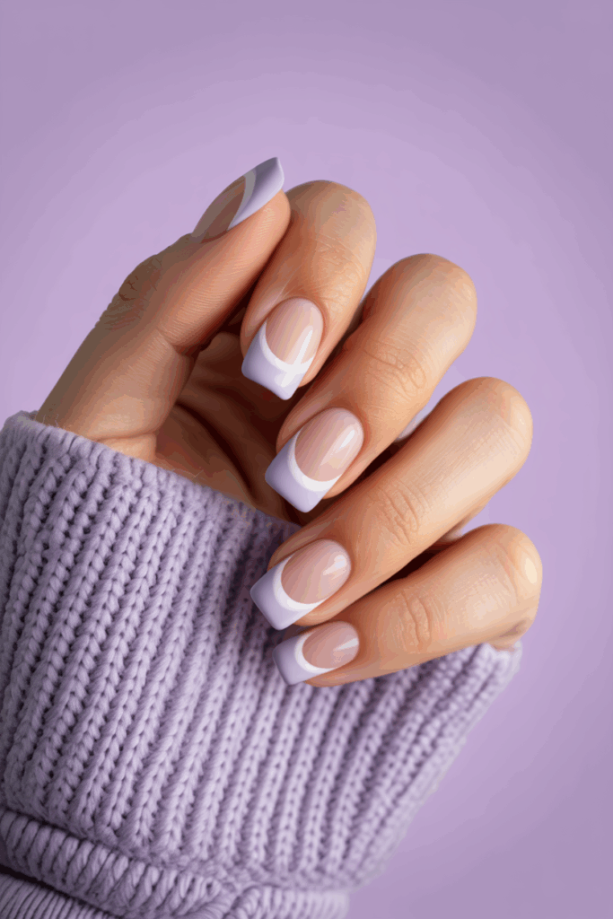 19) French tips with pastel lavender bases