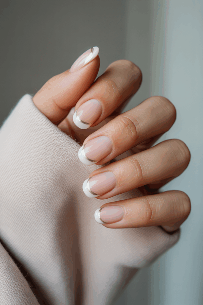 13) French tips with thin silver lining