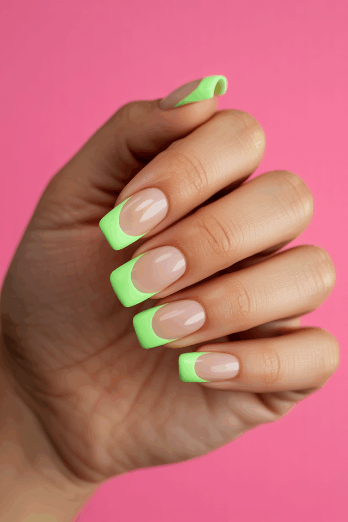 Neon-colored French tips add a bright, eye-catching edge to classic nail designs. They work well on any nail shape and length. This style is perfect for those who want a modern and lively look without losing the clean lines of a French tip.