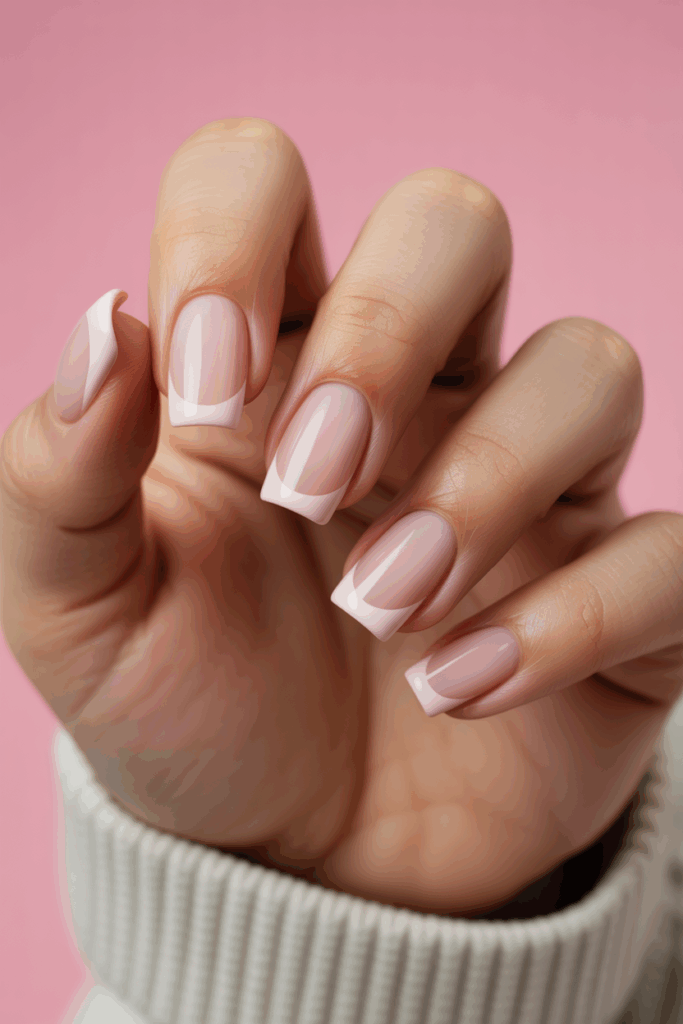 2) French tips with pastel pink base