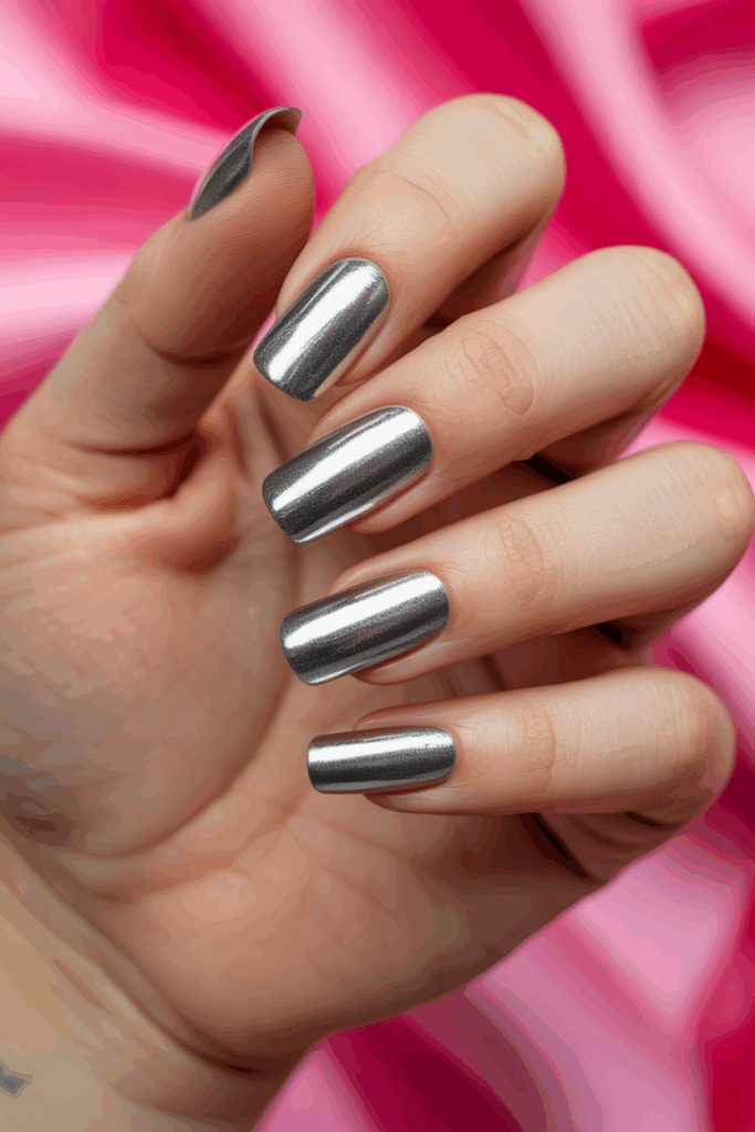 Chrome finish gel nails have a shiny, mirror-like surface. They use special powders or polishes to create a metallic effect.