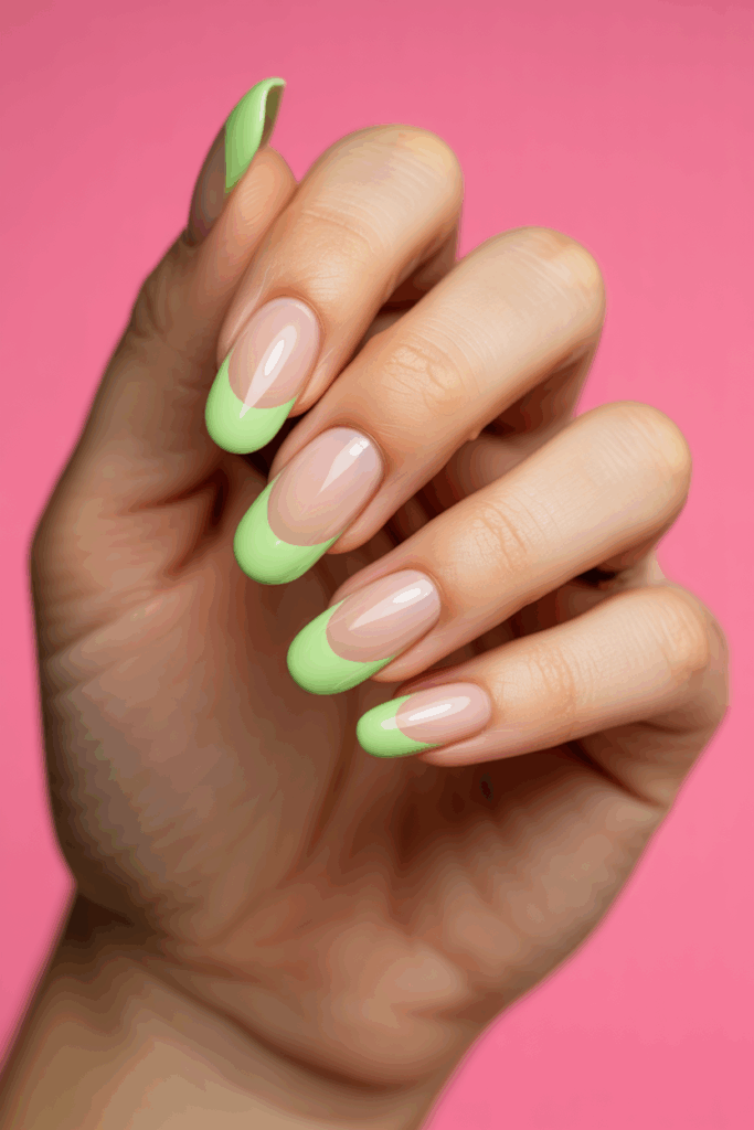 Fluorescent French gel nails update the classic French manicure with bright, glowing tips. They use vivid neon colors instead of the usual white. This look is modern and eye-catching while keeping the clean lines of a traditional French style. It works well for those who want a bold but polished finish.