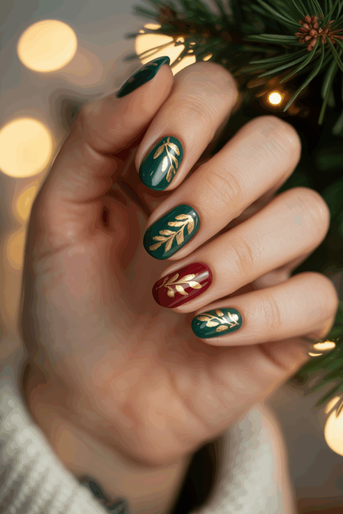 Gold foil accent nails add a festive shine without being too flashy. They often appear on one or two nails to keep the look balanced and polished.