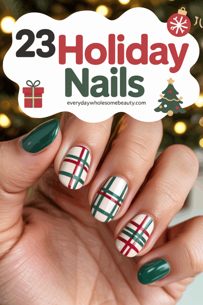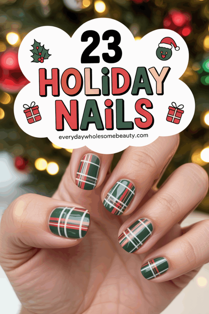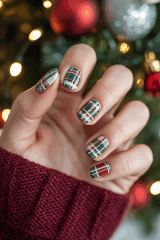 Holiday plaid patterns work well on short nails. They add a cozy, festive touch without needing long nail length.