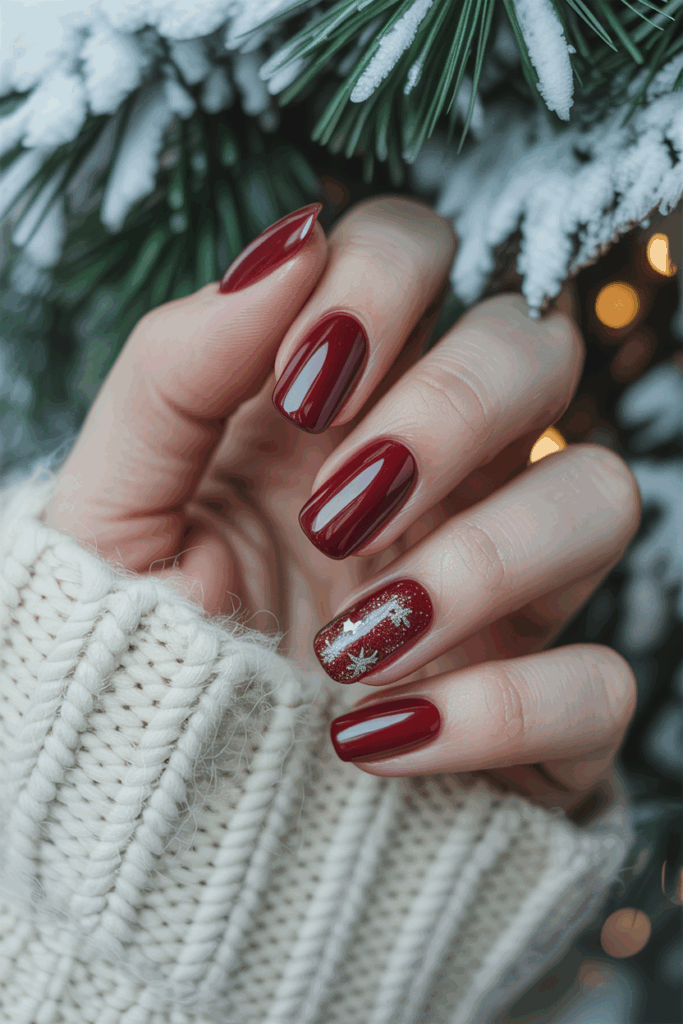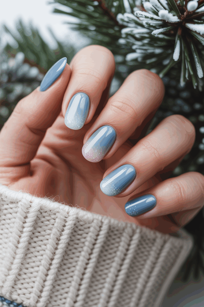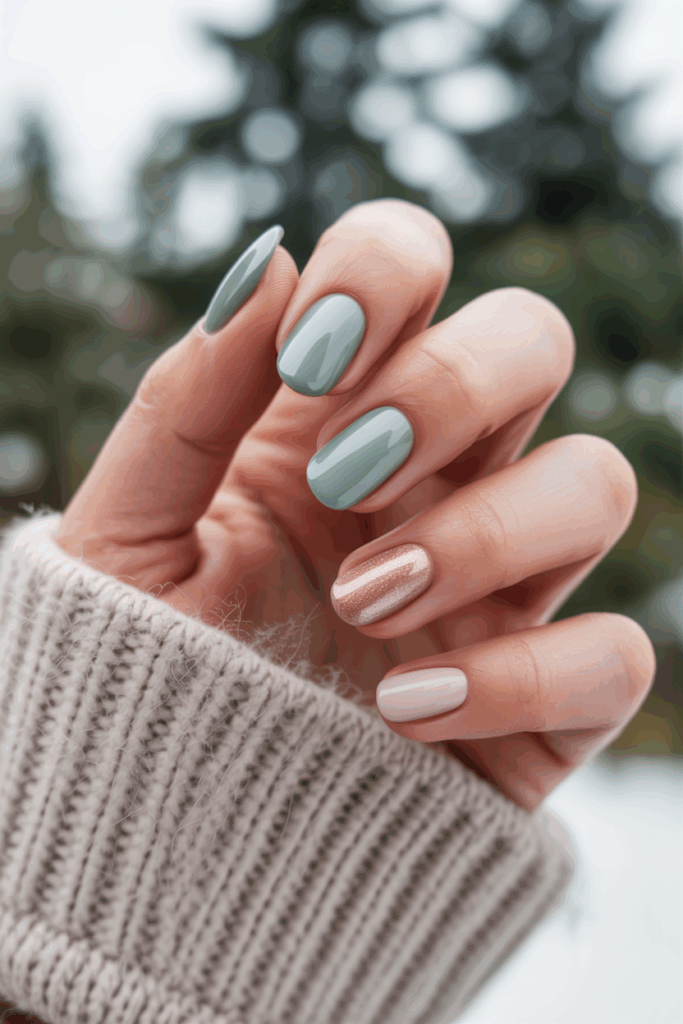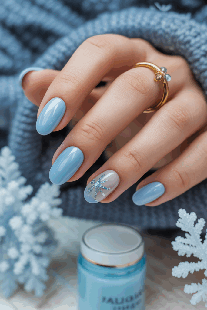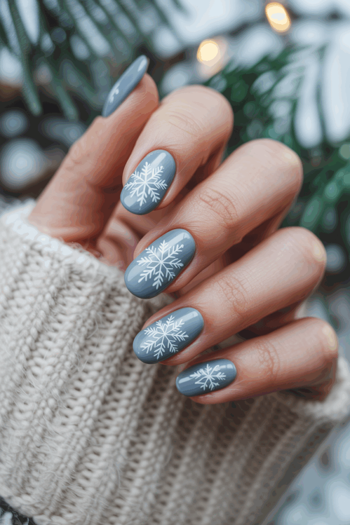 This shade works on all nail shapes and lengths. People often add a simple sparkle or a small design like a snowflake to enhance the cold-weather feel.