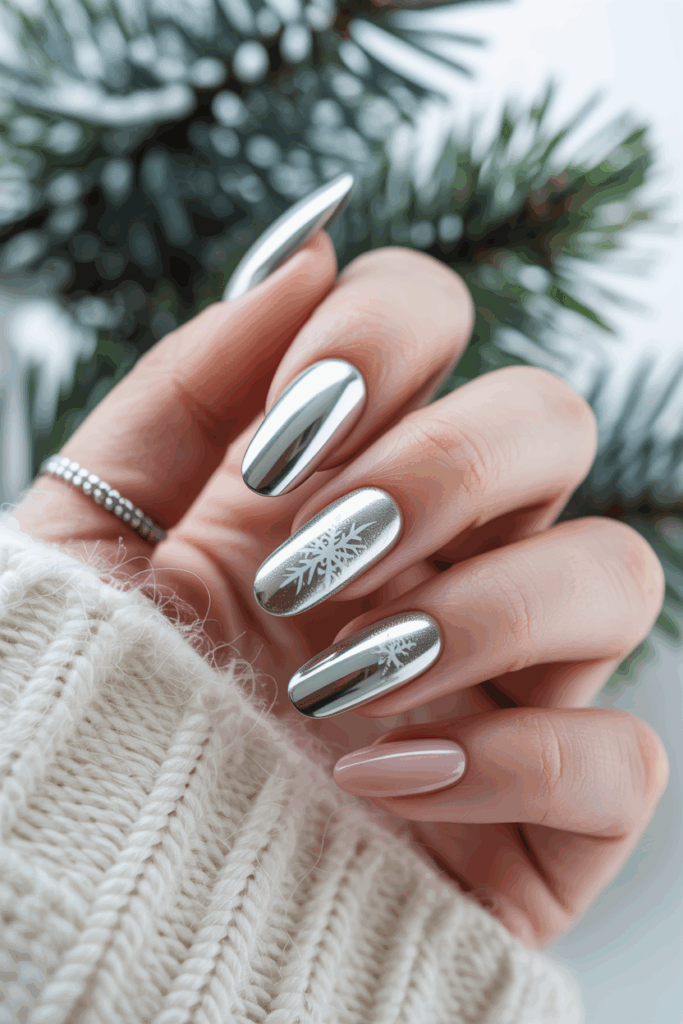 It is popular in winter because the chrome reflects icy, frosty vibes. Many choose silver or lavender chrome for a cool, fresh look.