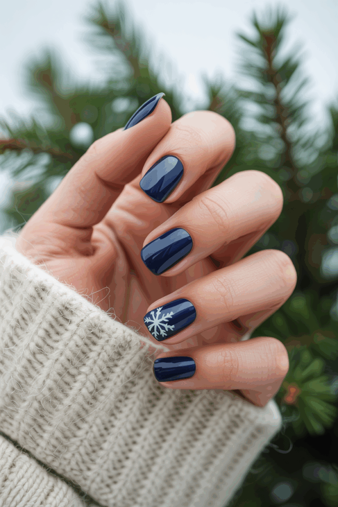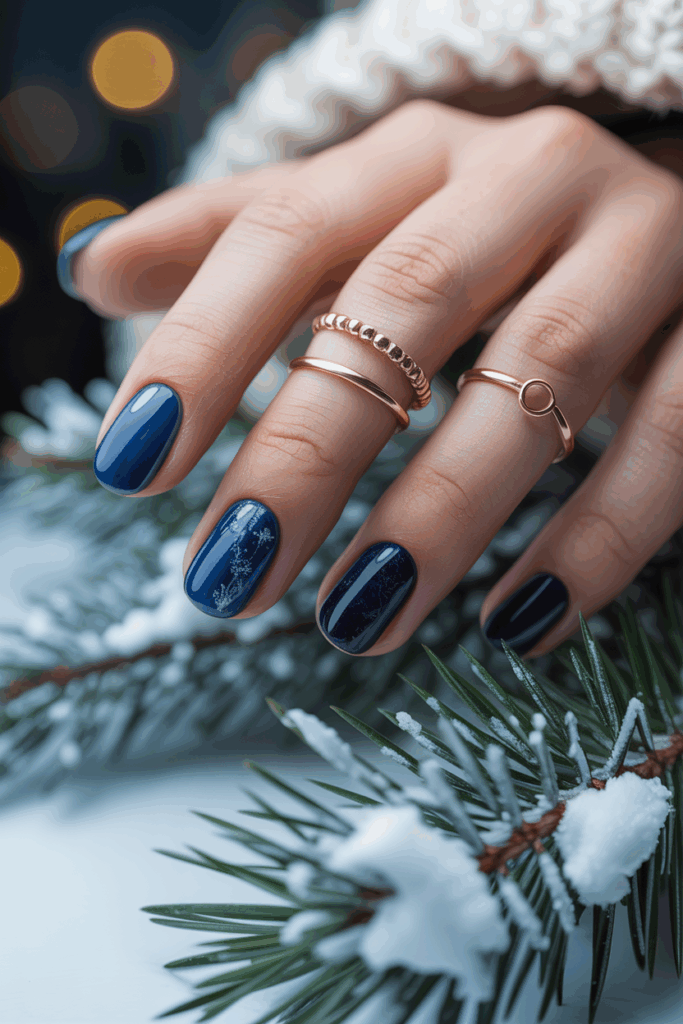Deep navy nails offer a rich, classic color that fits well in January. The shade suits all skin tones, making it a versatile choice for winter.