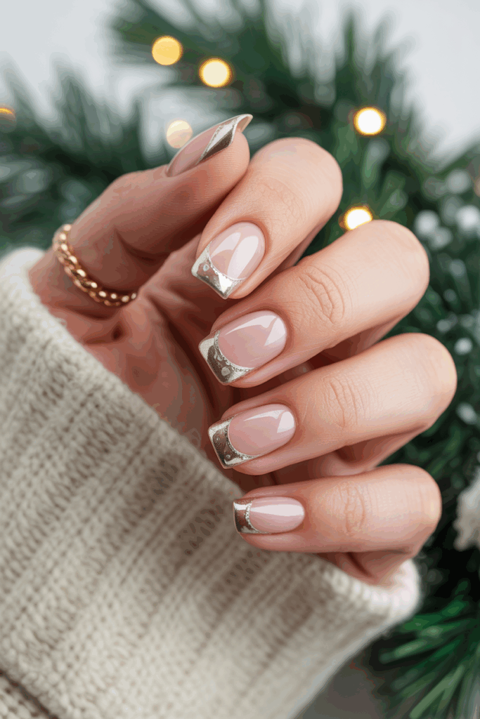 Metallic tips add a chic touch to any manicure. They often feature chrome or gold tones that stand out against neutral or dark bases.