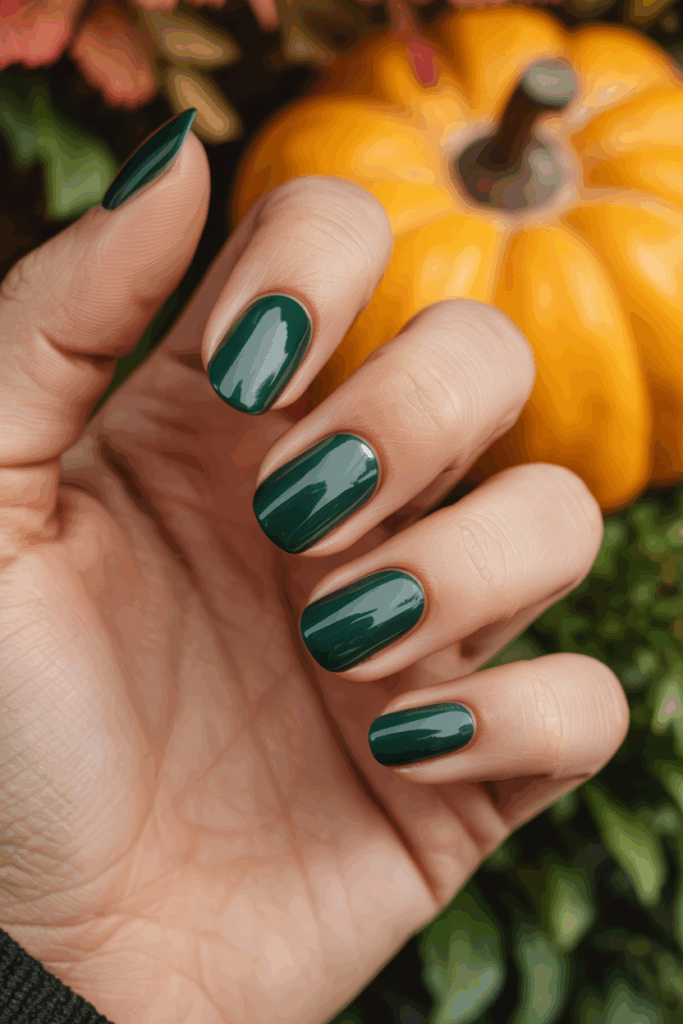 Deep forest green with a glossy finish offers a rich and polished look. It fits well with September’s cool and natural tones. This style is simple but elegant, making it a strong choice for both casual and formal occasions.