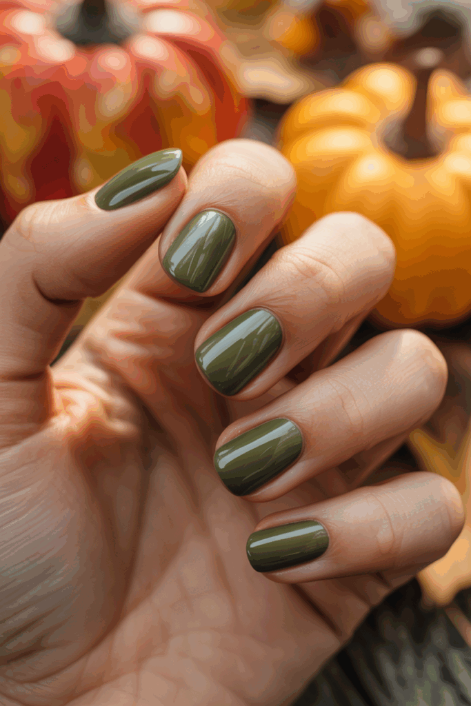 Olive green is a popular choice for September nails. Its muted, natural tone fits well with early fall colors.