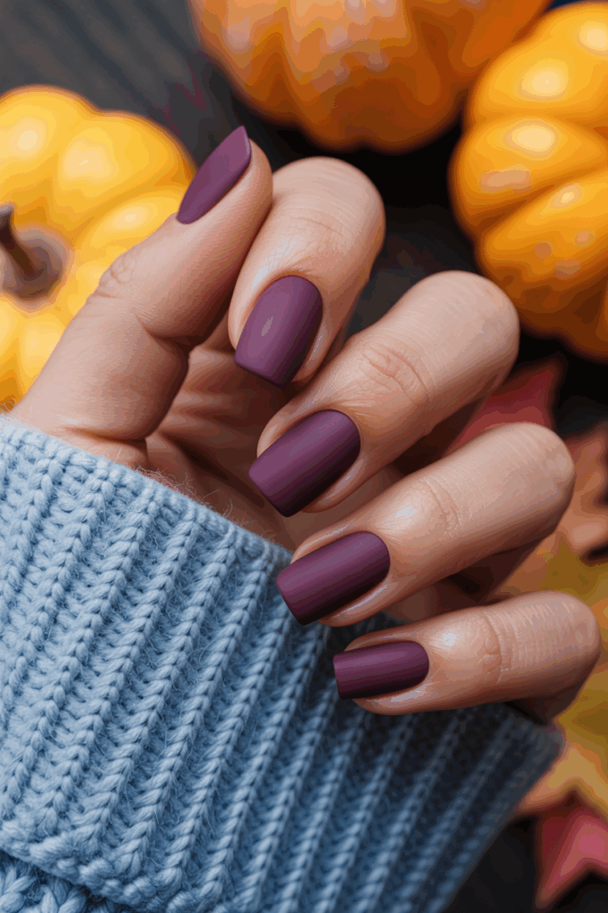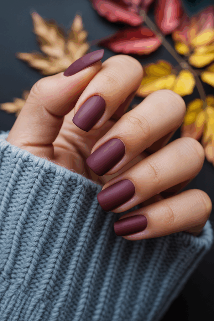 Plum matte nails offer a rich, muted look perfect for September. The matte texture adds depth without shine, creating a modern and classy effect. This finish works well on almond-shaped nails for a subtle, sophisticated style.