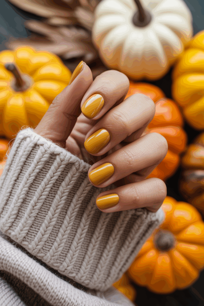 Muted mustard yellow offers a calm, earthy tone perfect for September. It gives nails a cozy, warm look without being too bright.