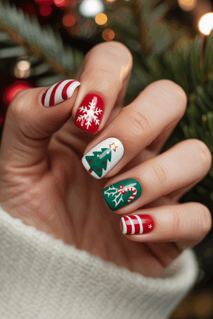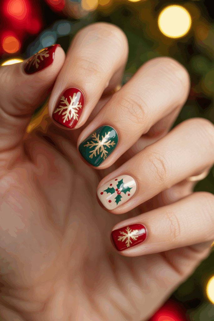 It works well on short nails because the colors balance without feeling crowded. This style fits both casual and formal holiday events.