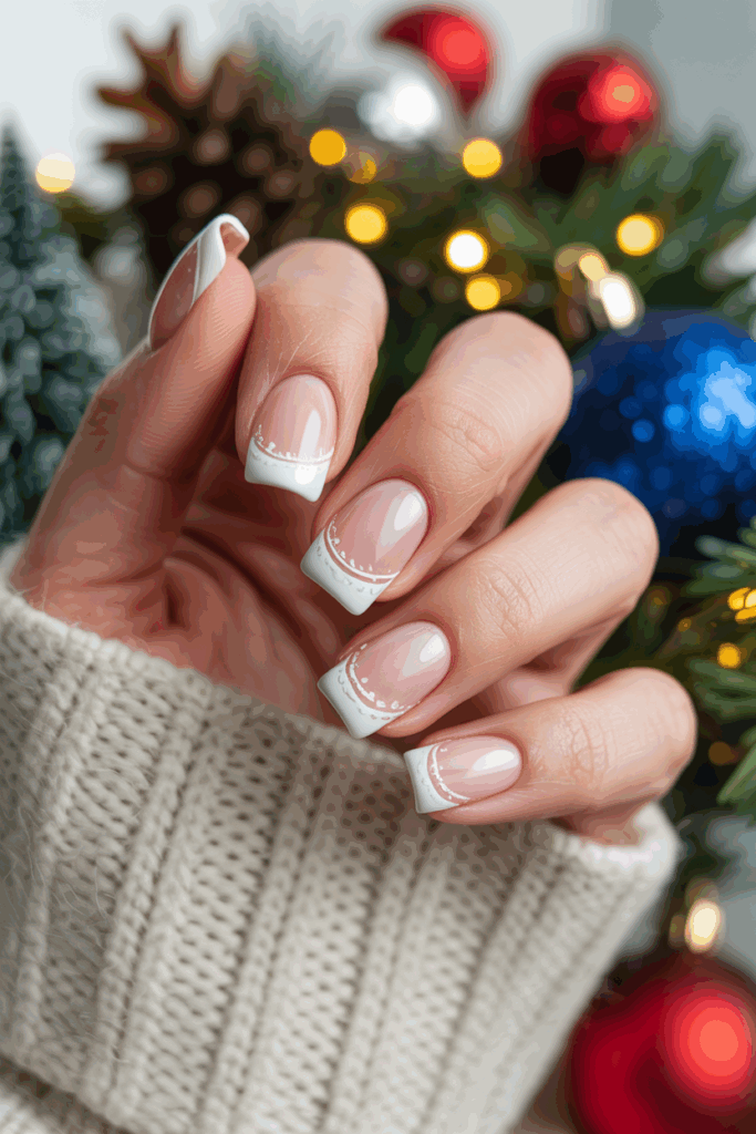 The base is usually a neutral shade, which makes the white tips stand out more. This design fits both casual and formal occasions during the holiday season.